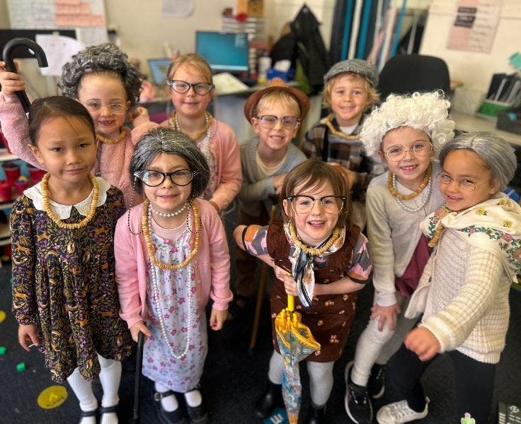 Early Stage 1 celebrated 100 Days of Kindergarten. This is a celebration marking the 100th day of the school year. It's a milestone where students and teachers reflect on the learning and growth achieved in the first half of the school year and engage in themed activities, often involving dressing up as 100-year-olds. They had a lot of fun seeing each other looking older than their years!