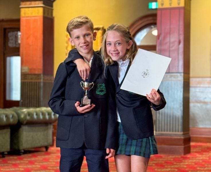 Sydney and Camden attended State Parliament House to represent Manly Village at the Bear Pit Public Speaking Competition Finals.